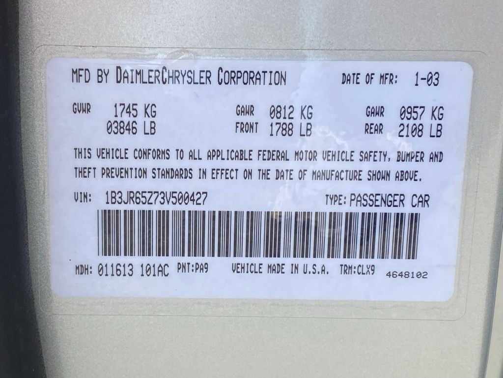 1B3JR65Z73V500427
