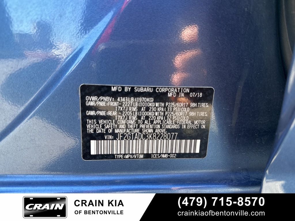 Whether you're commuting to the office, embarking on a weekend getaway, or tackling the great outdoors, the 2019 Subaru Crosstrek 2.0i Premium - AWD / SUNROOF is the perfect companion. Experience the perfect blend of capability, comfort, and convenience today. We invite you to visit our showroom and take this exceptional crossover for a test drive.