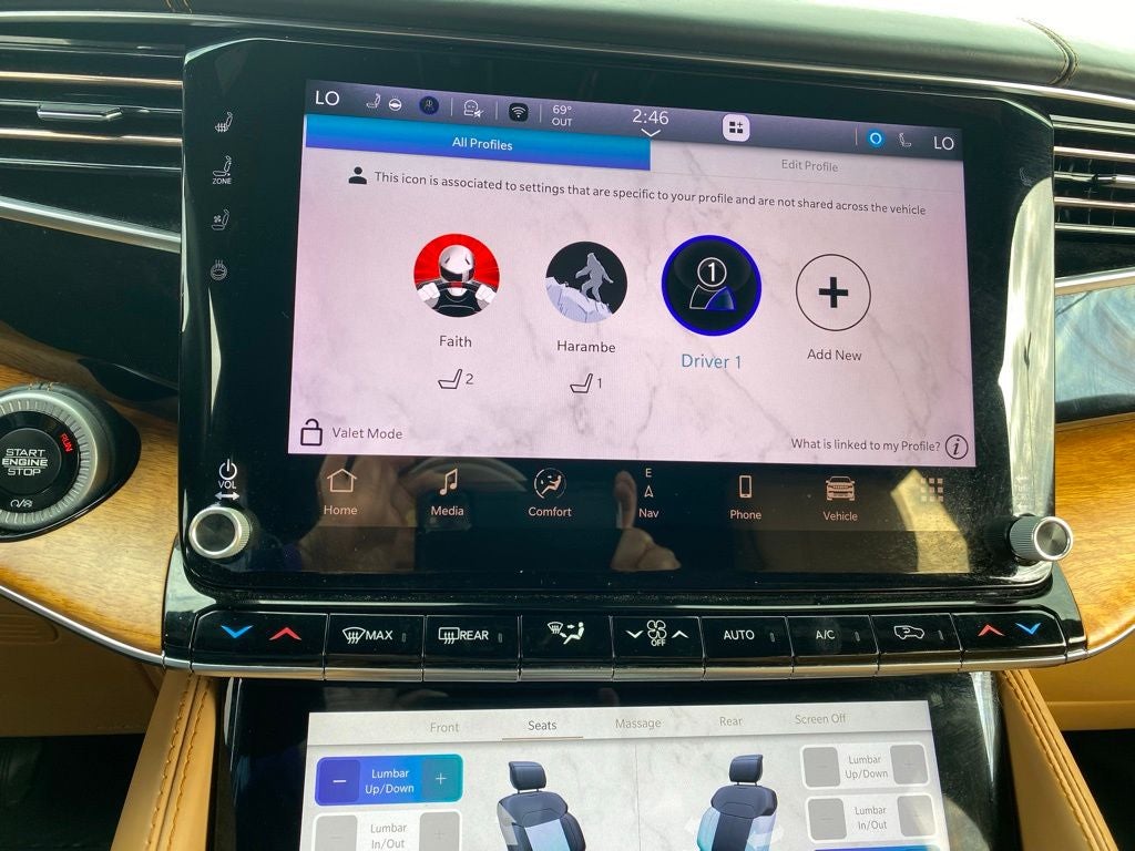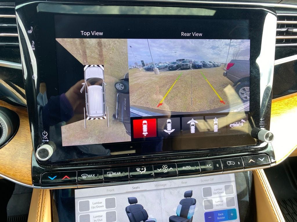 3.92 Rear Axle Ratio, 3rd row seats: bench, 4-Wheel Disc Brakes, ABS brakes, Adjustable pedals, Air Conditioning, Alloy wheels, AM/FM radio: SiriusXM with 360L, Anti-whiplash front head restraints, Audio memory, Auto High-beam Headlights, Auto-dimming door mirrors, Auto-dimming Rear-View mirror, Auto-leveling suspension, Automatic temperature control, Brake assist, Bumpers: body-color, Compass, Delay-off headlights, Driver door bin, Driver vanity mirror, Driver's Seat Mounted Armrest, Dual front impact airbags, Dual front side impact airbags, Electronic Stability Control, Four wheel independent suspension, Front anti-roll bar, Front Bucket Seats, Front Center Armrest w/Storage, Front dual zone A/C, Front fog lights, Front reading lights, Fully automatic headlights, Garage door transmitter, Genuine wood console insert, Genuine wood dashboard insert, Genuine wood door panel insert, Heads-Up Display, Heated door mirrors, Heated front seats, Heated rear seats, Heated steering wheel, Illuminated entry, Knee airbag, Leather steering wheel, Low tire pressure warning, Memory seat, Navigation System, Night vision lights, Normal Duty Suspension, Occupant sensing airbag, Outside temperature display, Overhead airbag, Overhead console, Panic alarm, Passenger door bin, Passenger seat mounted armrest, Passenger vanity mirror, Pedal memory, Power adjustable front head restraints, Power door mirrors, Power driver seat, Power Liftgate, Power moonroof, Power passenger seat, Power steering, Power windows, Premium Leather Trimmed Bucket Seats, Quick Order Package 23W, Radio data system, Radio: Uconnect 5 Nav w/12.0 Display, Rain sensing wipers, Rear air conditioning, Rear anti-roll bar, Rear dual zone A/C, Rear reading lights, Rear seat center armrest, Rear window defroster, Rear window wiper, Reclining 3rd row seat, Remote keyless entry, Roof rack, Security system, Speed control, Speed-sensing steering, Speed-Sensitive Wipers, Split folding rear seat, Steering wheel memory, Steering wheel mounted audio controls, Tachometer, Telescoping steering wheel, Tilt steering wheel, Traction control, Trip computer, Turn signal indicator mirrors, Two Tone Paint Group, Variably intermittent wipers, Ventilated front seats, Ventilated rear seats, Voltmeter, Wheels: 22 x 9.0 Premium 4 Aluminum.