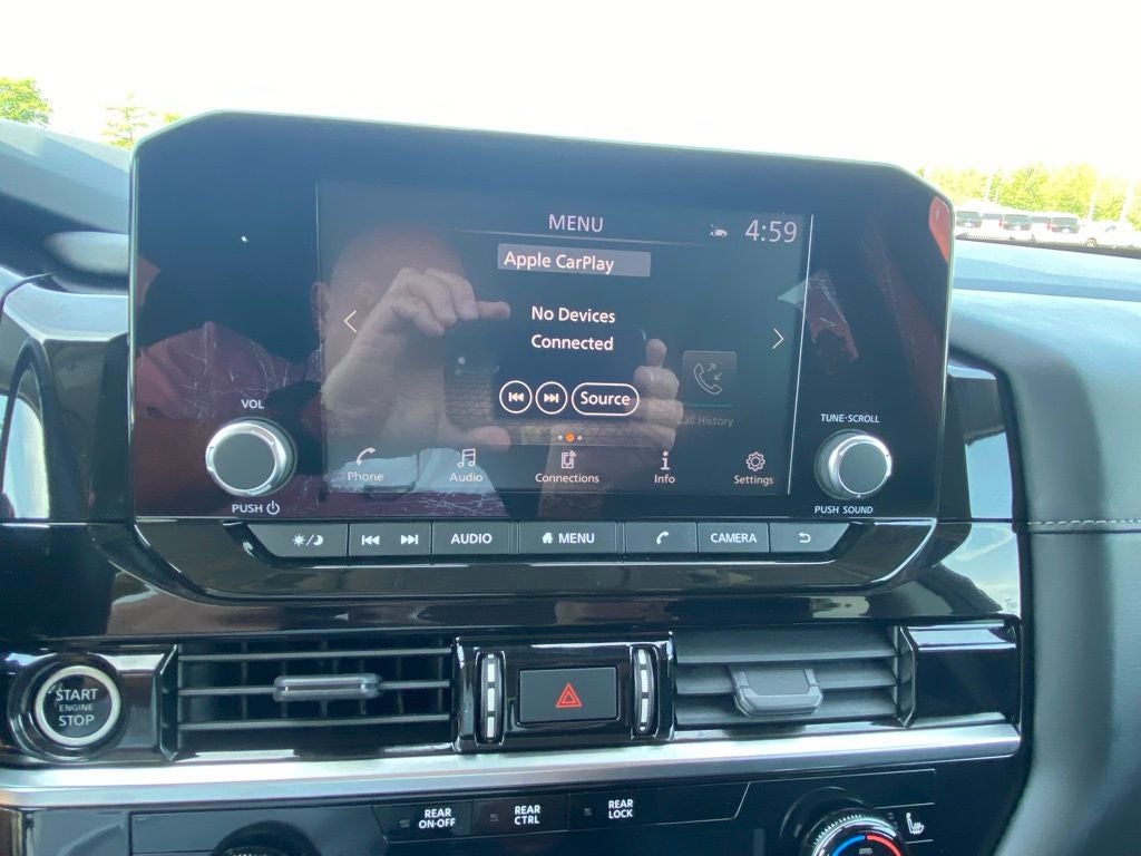 - Radio: AM/FM Audio System w/NissanConnect -inc: 6 speakers, Apple CarPlay and Android Auto, 8" color display w/multi-touch control, SiriusXM satellite radio w/advanced audio features, 2 illuminated front USB connection ports (1 type A, 1 type C) for iPod interface and other compatible devices, Bluetooth hands-free phone system, streaming audio via Bluetooth, hands-free text messaging assistant and Siri Eyes-Free/Google Assistant voice recognition