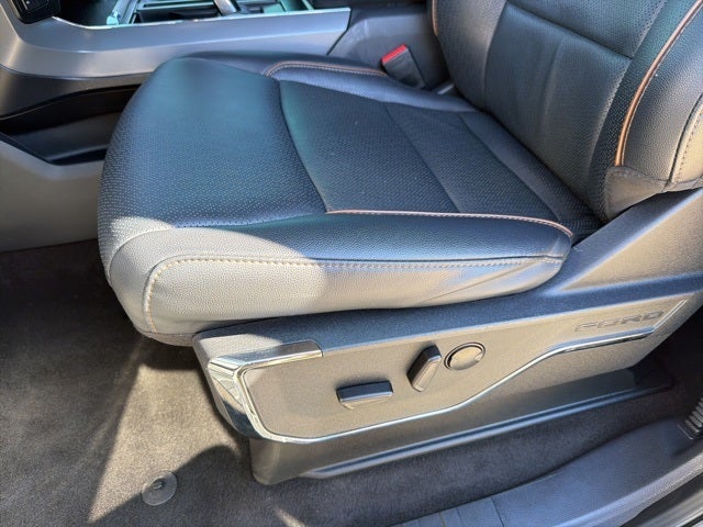 Clean CARFAX. CARFAX One-Owner. Bluetooth®, Safety Package, ONE OWNER CLEAN CARFAX, F-150 Lariat, 4D SuperCrew, 5.0L V8, 10-Speed Automatic, 4WD, Carbonized Gray Metallic, Black w/Leather Trim Seats, 4-Wheel Disc Brakes, 4x4 FX4 Off-Road Bodyside Decal, 8 Speakers, ABS brakes, Adjustable pedals, Air Conditioning, Alloy wheels, AM/FM radio: SiriusXM with 360L, Auto High-beam Headlights, Auto-dimming door mirrors, Auto-dimming Rear-View mirror, Automatic temperature control, Brake assist, Bumpers: chrome, Chrome wheels, Compass, Delay-off headlights, Driver door bin, Driver vanity mirror, Dual front impact airbags, Dual front side impact airbags, Electronic Locking w/3.31 Axle Ratio, Electronic Stability Control, Emergency communication system: SYNC 4 911 Assist, Equipment Group 501A Standard, Front anti-roll bar, Front Bucket Seats, Front Center Armrest, Front dual zone A/C, Front fog lights, Front License Plate Bracket, Front reading lights, Front wheel independent suspension, Fully automatic headlights, FX4 Off-Road Package, Garage door transmitter, Heated door mirrors, Heated front seats, Heated steering wheel, Hill Descent Control, Illuminated entry, Leather-Trimmed Bucket Seats, Low tire pressure warning, Memory seat, Monotube Rear Shocks, Navigation system: Connected Navigation, Occupant sensing airbag, Off-Road Tuned Front Shock Absorbers, Outside temperature display, Overhead airbag, Overhead console, Panic alarm, Passenger door bin, Passenger vanity mirror, Pedal memory, Power door mirrors, Power driver seat, Power passenger seat, Power steering, Power windows, Radio data system, Radio: B&O Sound System by Bang & Olufsen, Rain sensing wipers, Rear reading lights, Rear seat center armrest, Rear step bumper, Rear window defroster, Remote keyless entry, Rock Crawl Mode, Security system, Speed control, Split folding rear seat, Steering wheel mounted audio controls, SYNC 4 w/Enhanced Voice Recognition, Tachometer, Telescoping steering wheel, Tilt steering wheel, Traction control, Tray Style Floor Liner, Trip computer, Turn signal indicator mirrors, Variably intermittent wipers, Ventilated front seats, Voltmeter, Wheels: 20 Chrome-Like PVD.