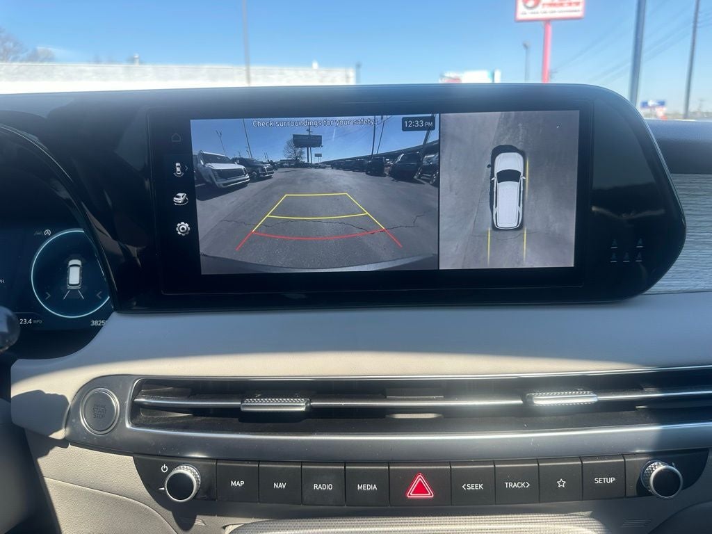 - Radio: AM/FM/MP3 Premium Audio System -inc: 630-Watts, Harman Kardon audio system w/12-speakers, Quantum Logic Surround, Clari-Fi, 12.3" color touchscreen display, onboard navigation w/traffic flow including incident data via HD Radio (HERE), Over-the-Air (OTA) map updates, SiriusXM, Android Auto and Apple CarPlay, USB, dynamic voice recognition, rear seat quiet mode, passenger talk (in-car intercom), Bluetooth® hands-free connectivity w/multiple device connection and Bluelink Connected Car System