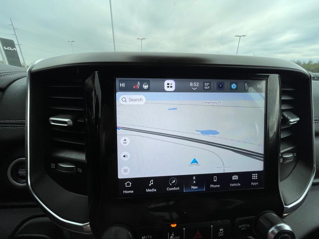 10 Speakers, 115V Auxiliary Rear Power Outlet, 2 Way Rear Headrest Seat, 220 Amp Alternator, 3.73 Axle Ratio, 4 Way Front Headrests, 4-Wheel Disc Brakes, 4G LTE Wi-Fi Hot Spot, ABS brakes, Active Noise Control System, Adaptive Cruise Control w/Stop, Adaptive Steering System, Air Conditioning, Alloy wheels, AM/FM radio: SiriusXM with 360L, Apple CarPlay, Apple CarPlay/Android Auto, Auto High Beam Headlamp Control, Automatic temperature control, Blind Spot & Cross Path Detection, Brake assist, Bumpers: body-color, Cluster 12 TFT Color Display, Compass, Connectivity - US/Canada, Delay-off headlights, Driver door bin, Driver vanity mirror, Dual front impact airbags, Dual front side impact airbags, Electronic Stability Control, Electronically Controlled Throttle, Exterior Mirrors w/Heating Element, Front anti-roll bar, Front Center Armrest w/Storage, Front dual zone A/C, Front License Plate Bracket, Front reading lights, Front Seat Back Map Pockets, Full Speed Forward Collision Warning Plus, Fully automatic headlights, Garage door transmitter, Global Telematics Box Module (TBM), Google Android Auto, GPS Antenna Input, Heated door mirrors, Heated Front Seats, Heated front seats, Heated Steering Wheel, Heated steering wheel, Illuminated entry, Integrated Voice Command w/Bluetooth®, Lane Keep Assist, Leather steering wheel, Leather Trim 40/20/40 Bench Seat, Low tire pressure warning, Manufacturer's Statement of Origin, Navigation System, Occupant sensing airbag, Outside temperature display, Overhead airbag, Overhead console, Panic alarm, ParkView Rear Back-Up Camera, Passenger door bin, Passenger vanity mirror, Power 2-Way Driver Lumbar Adjust, Power 2-Way Passenger Lumbar Adjust, Power Adjust 8-Way Driver Seat, Power Adjust 8-Way Front Passenger Seat, Power Adjust Mirrors, Power door mirrors, Power driver seat, Power passenger seat, Power steering, Power windows, Quick Order Package 2HH Laramie, Radio data system, Rain Sensitive Windshield Wipers, Rear 60/40 Folding Seat, Rear anti-roll bar, Rear reading lights, Rear seat center armrest, Rear step bumper, Rear window defroster, Remote keyless entry, Safety Group, Security system, SiriusXM Radio Service, Speed control, Split folding rear seat, Steering wheel mounted audio controls, Tachometer, Tilt steering wheel, Tip Start, Tow Hooks, Traction control, Trip computer, Turn signal indicator mirrors, Variably intermittent wipers, Voltmeter, Wheels: 18 x 8.0 Polished Aluminum.